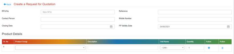 The new RFQ will have the option to mention product delivery address, RFQ contact person info and note. A buyer require to input all these information so that supplier can have enough information about this RFQ and able to quote accordingly.